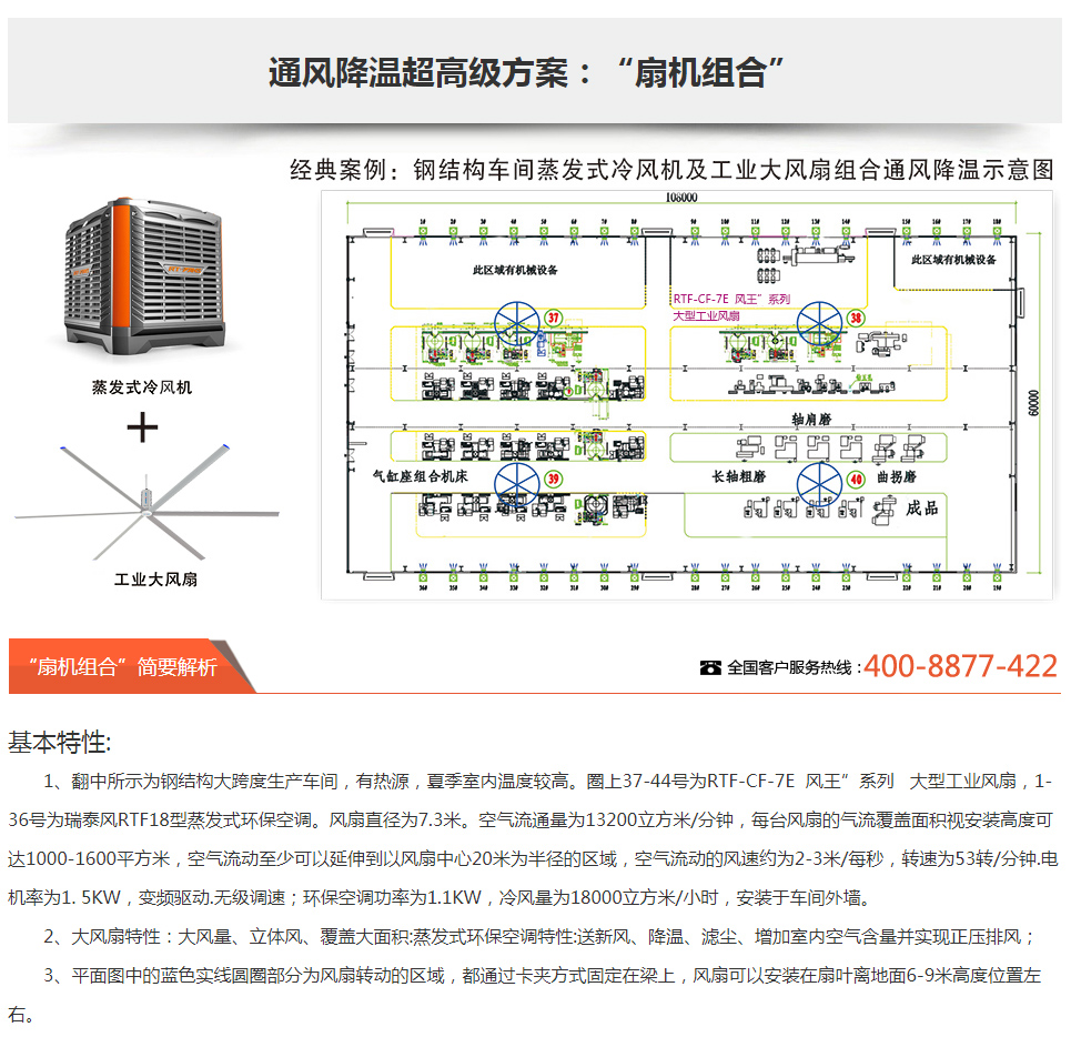 品牌型號:瑞泰風“風王”系列大型工業風扇 適用面積:單臺覆蓋1800平方米 使用范圍:廠房、倉庫、商業中心、火車站汽車站、展館、畜牧場等。